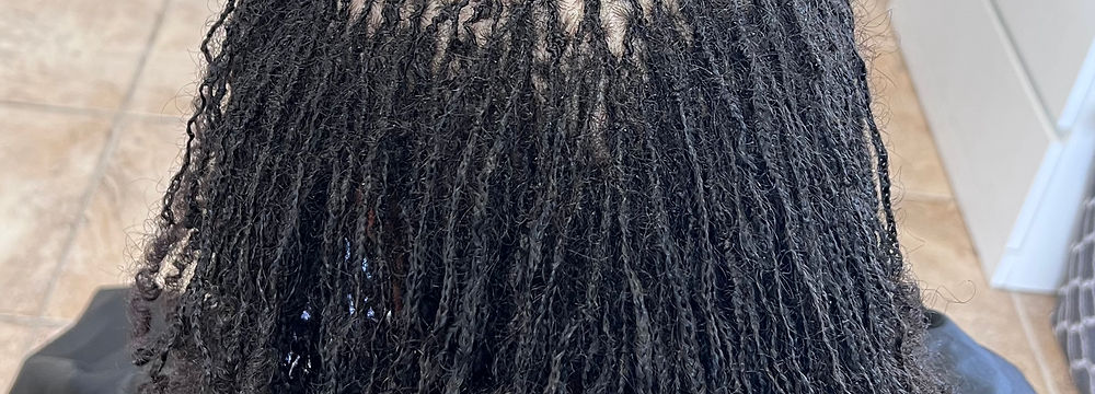 STARTER MICROLOCS BRAIDS using the individual braid method and interlocking the roots. Hair must be at least 6 inches in length. Price starting at $1,600 and $50 for each additional inch. The final price is based on your hair’s full length, density, and size. This service requires 2 consecutive appointment days. Includes a full scalp therapy treatment and scalp exfoliation, a full therapeutic shampoo service, and an aromatherapy deep conditioning hair mask treatment, a blowout for preparation of installation of micro braids. *Starting price is based on low and medium density hair. High density hair will require an additional $75 fee added to service total. METHOD: Individual braids PROS: elongates length, less frizz, no shrinkage, little to no unraveling CONS: no volume, blends slowly into lock formation